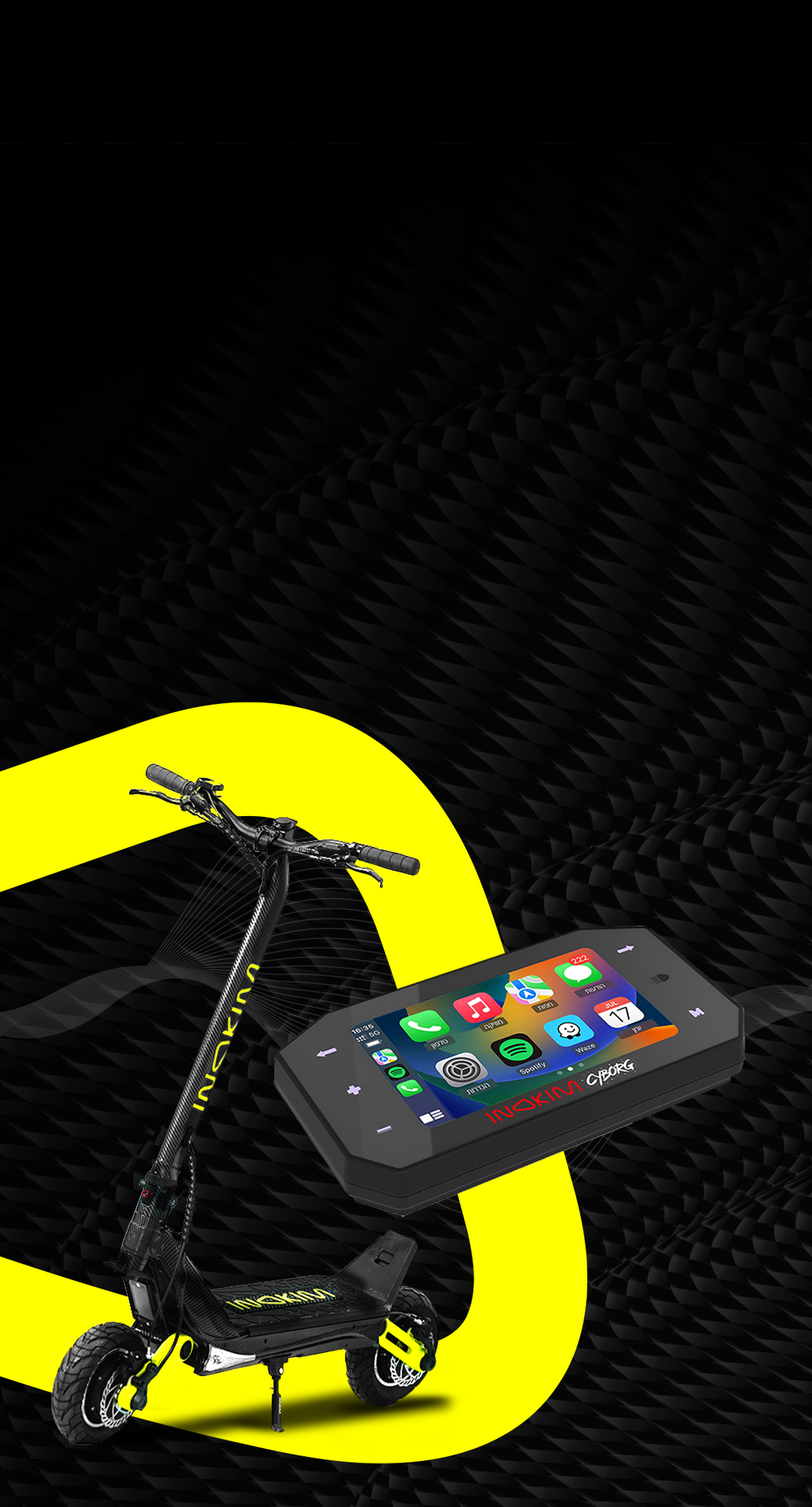 תוספת CYBORG הופכת את ה-OX CARBON לכם עם קישוריות מלאה: Spotify, Waze, דיבורית, Carplay